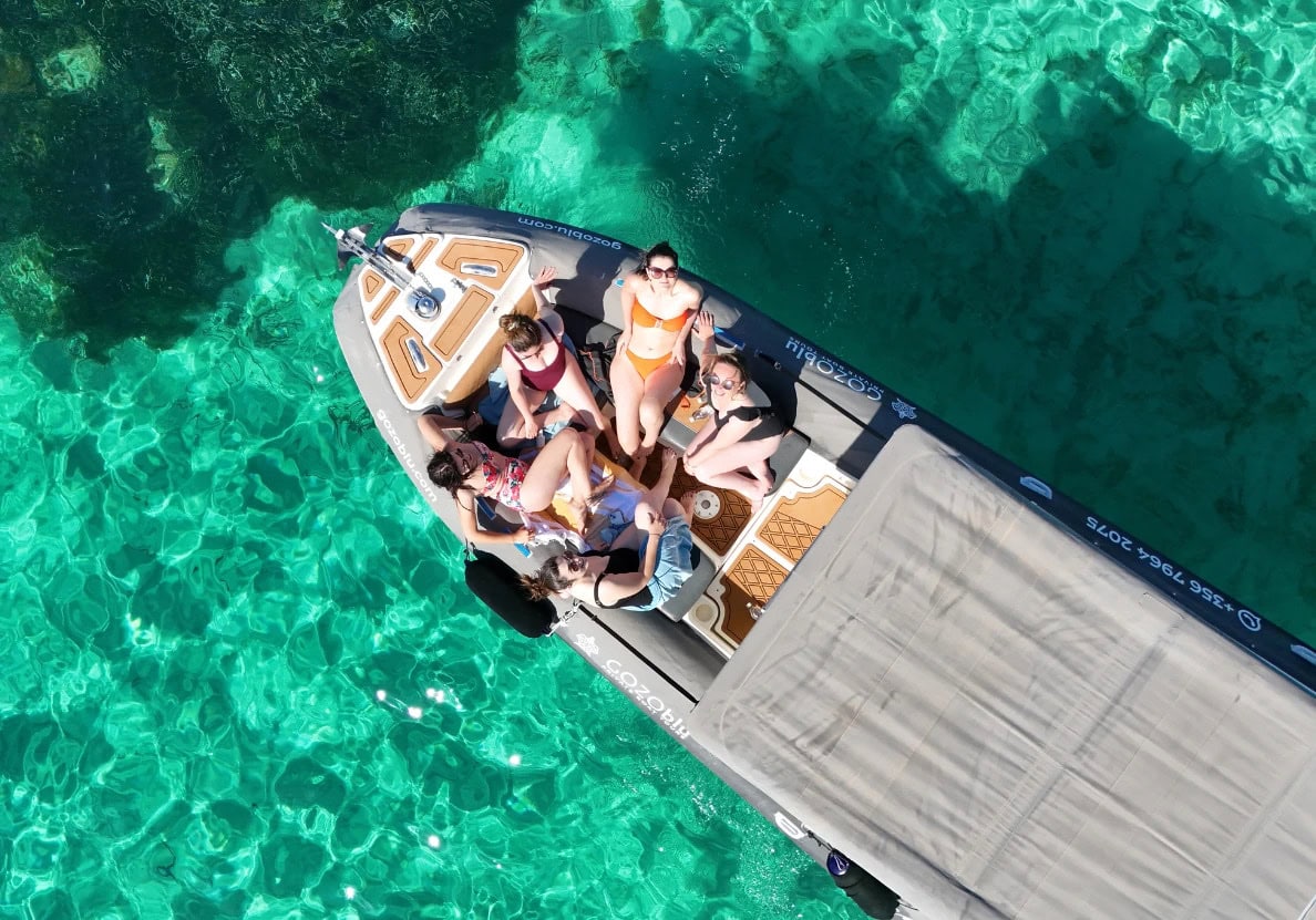 • Access to Hidden Coves & Shallow Areas: GOZOblu uses two premium boats: a powerful Yamaha V6 250 RIB and the new 2025 Zodiac Medline 900. Both designed for stability, comfort, and smooth handling. Their shallow draft and agile performance allow the skipper to navigate into crystal-clear coves, narrow inlets, and secluded swimming spots that big commercial boats simply cannot reach.